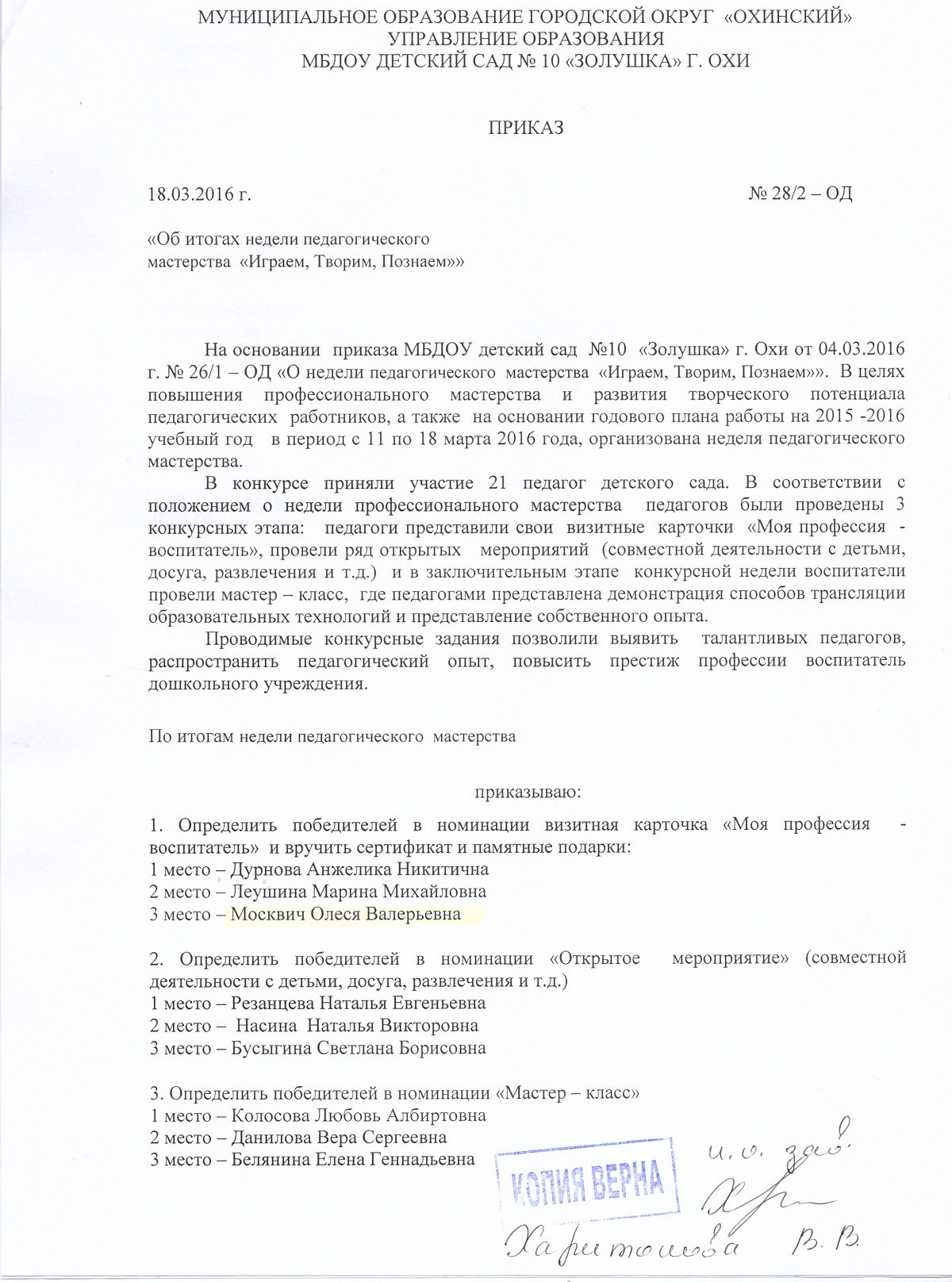 Приказ и сертификат об итогах недели педагогического мастерства "Играем,Творим,Познаем"
