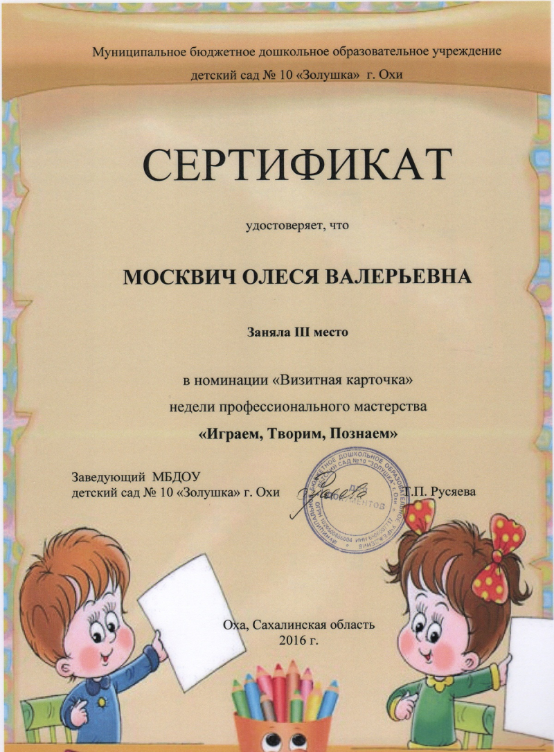 сайт Москвич Олеси Валерьевны воспитателя МБДОУ детский сад №10 "Золушка" г. Охи