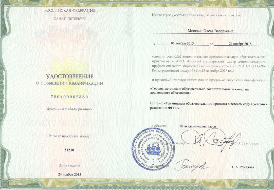 Удостоверение повышения квалификации
